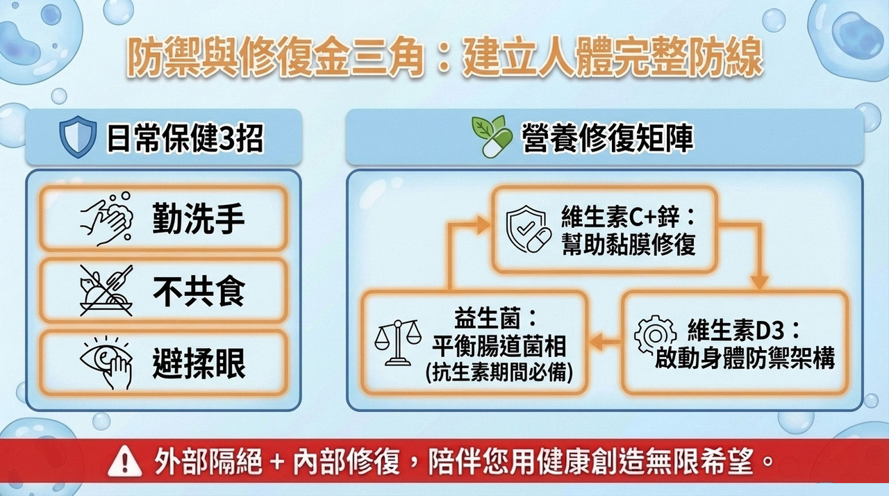 - 避揉眼: 減少粘膜接觸外界病菌的機會。