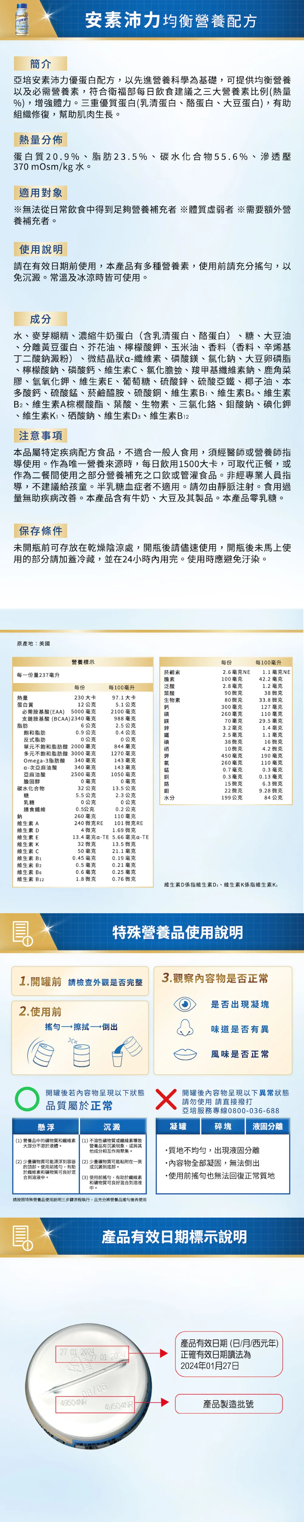 【亞培】安素沛力減甜237ml 24罐/箱(整箱出貨)