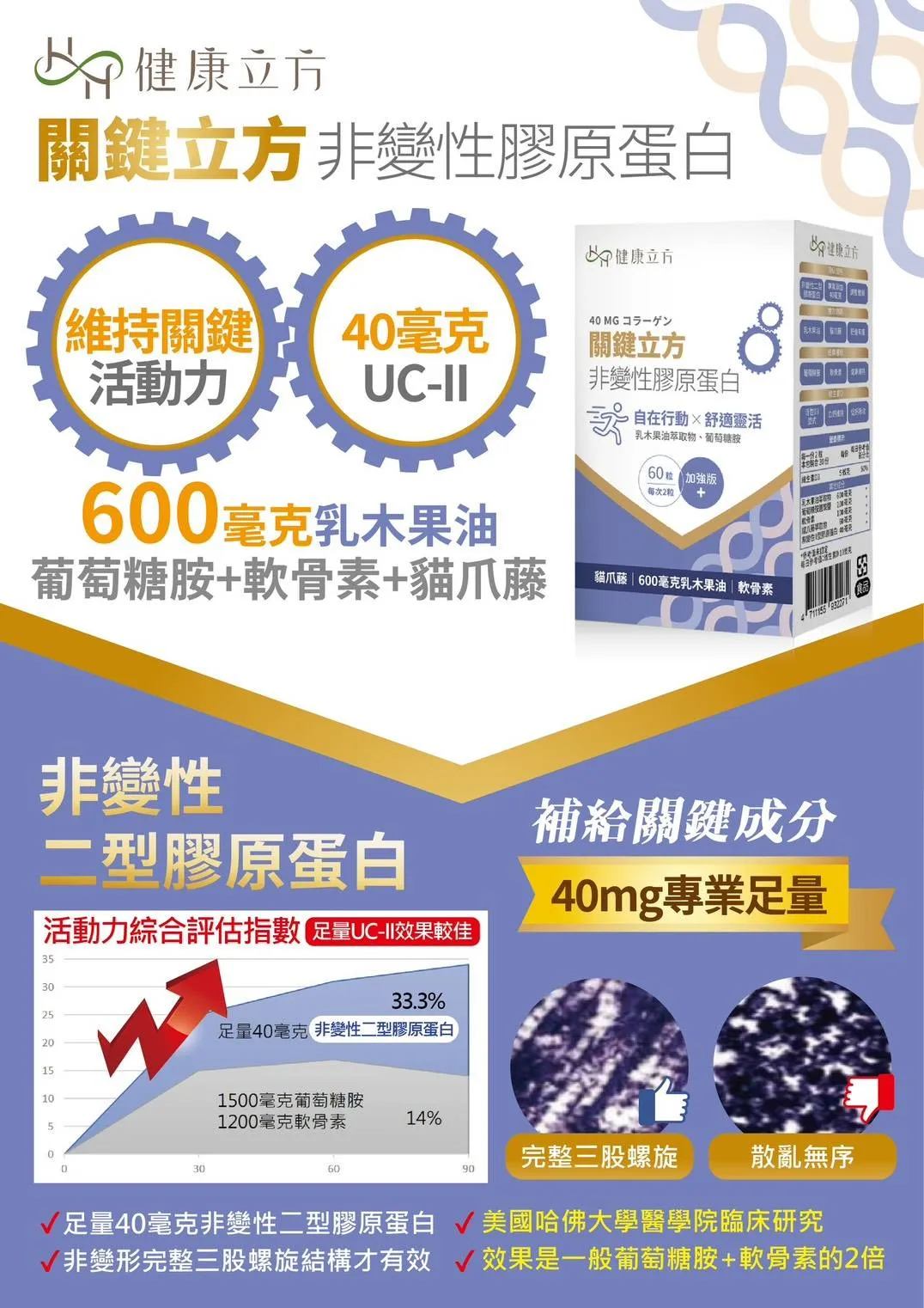 【健康立方】關鍵立方非變型二型膠原蛋白軟膠囊60粒/盒