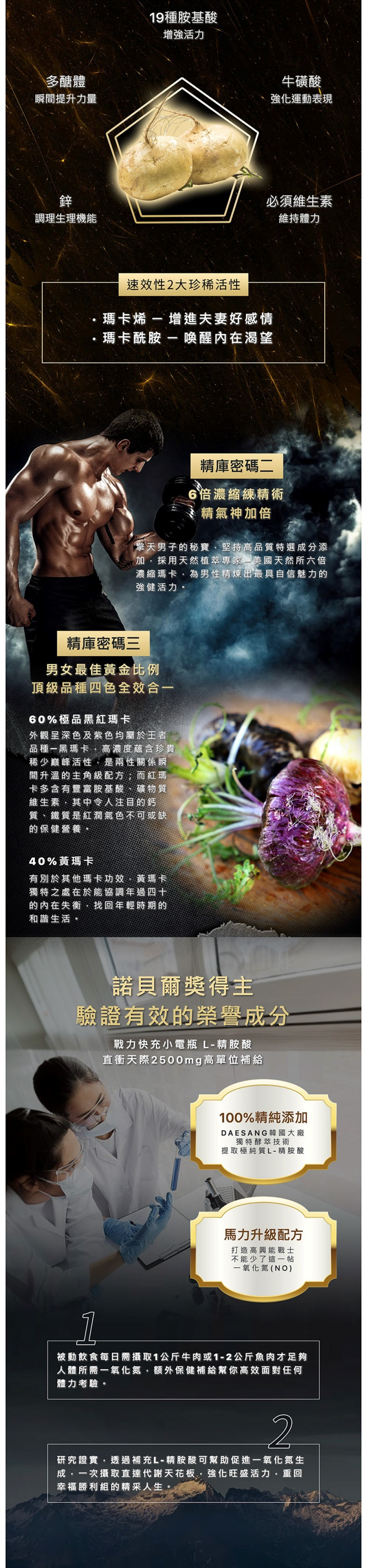 頂規|足量2500mg瑪卡與精胺酸,幫助新陳代謝。