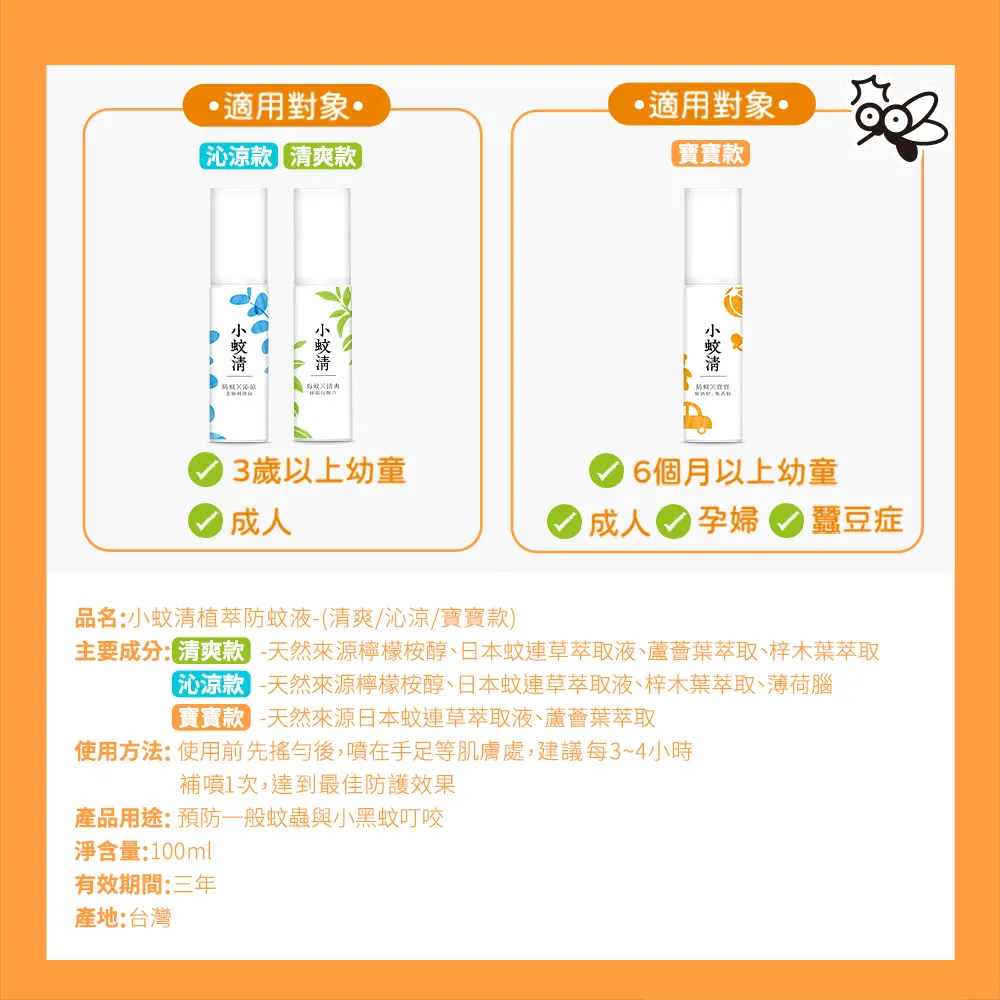 【小蚊清】植萃寶寶防蚊液(無調香)100ML /瓶