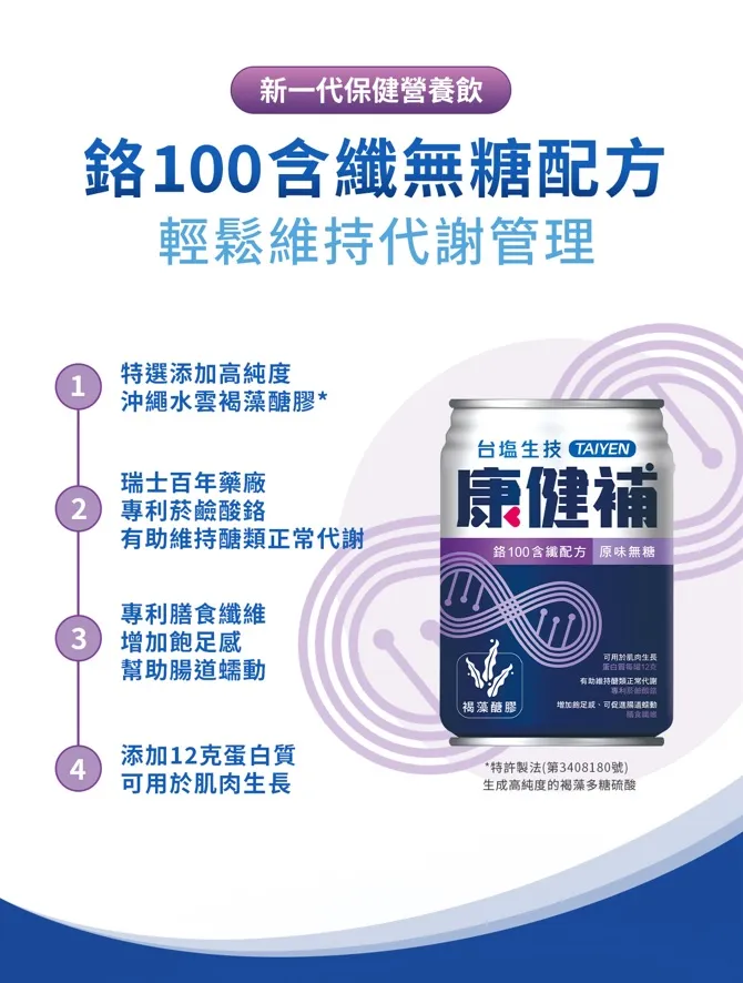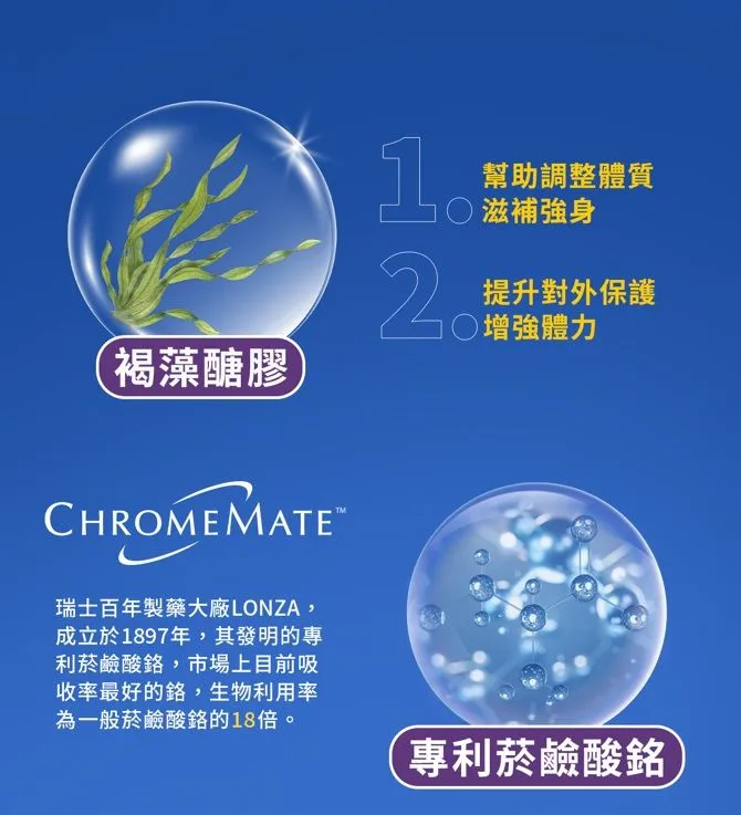 •新一代保健營養品,幫助調整體質! •全新配方添加沖繩水雲褐藻醣膠 •瑞士百年藥廠專利菸鹼酸鉻 •膳食纖維 •12克蛋白質