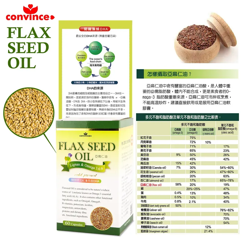 商品成分:每粒1010mg 亞麻仁油(含Omega-3 60%以上)、紅藻萃取(含DHA 40%)