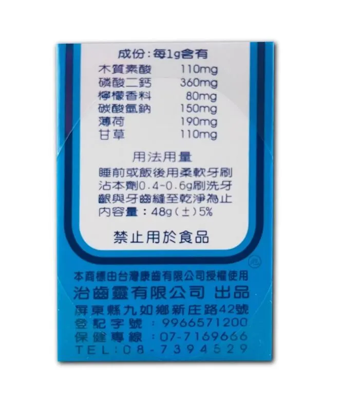 使用方法:睡前或飯後用柔軟牙刷沾本劑0.4~0.6g,刷洗牙銀與牙齒縫製乾淨為止。