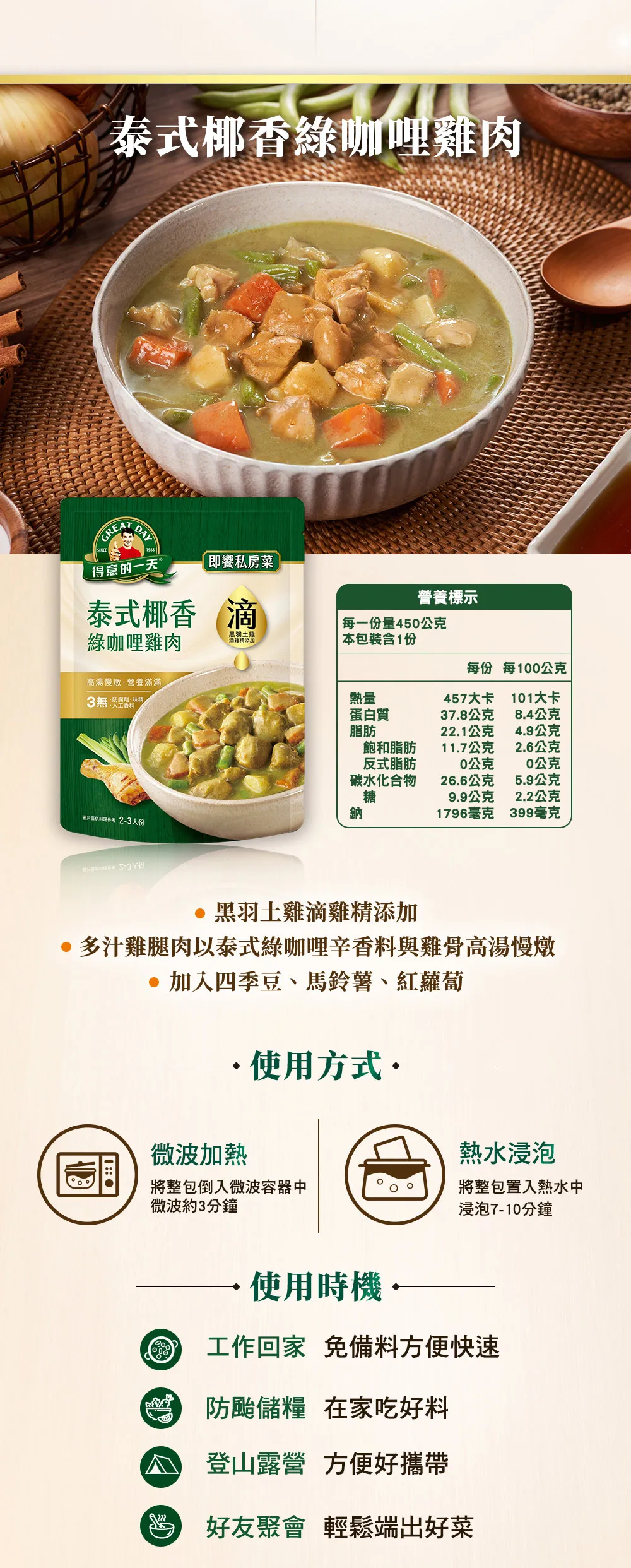 得意的一天-椰香綠咖哩雞肉450G /盒 (2~3人份)