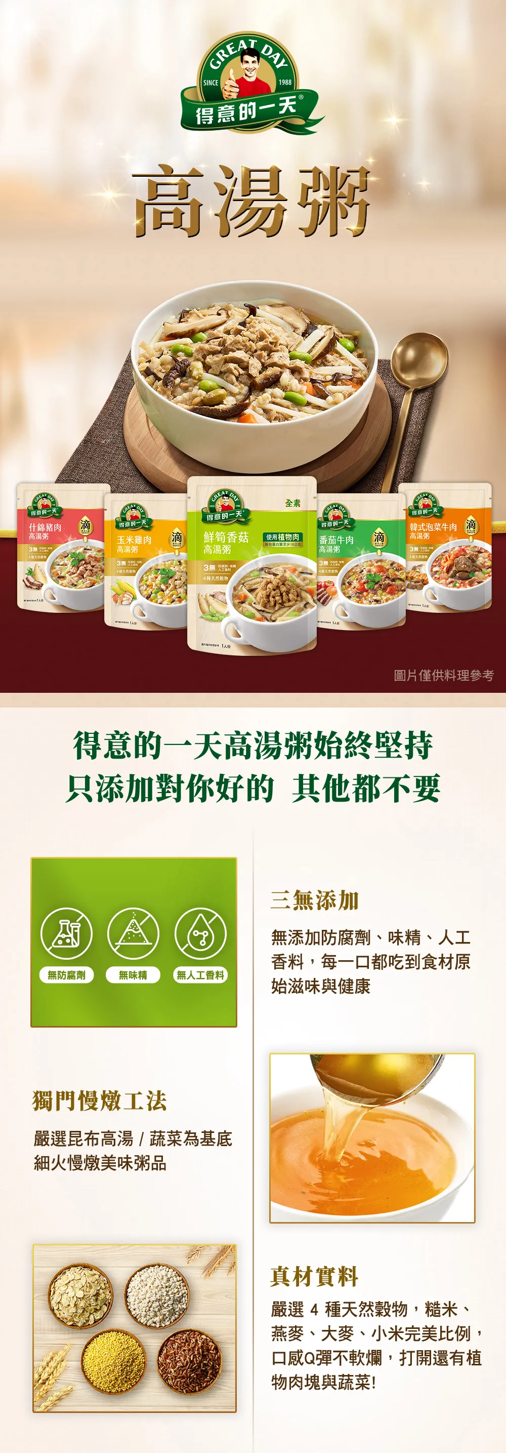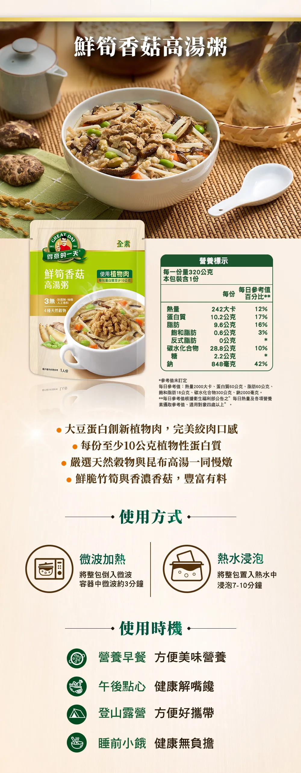 得意的一天-鮮筍香菇高湯粥320G(植物肉 素食) /袋
