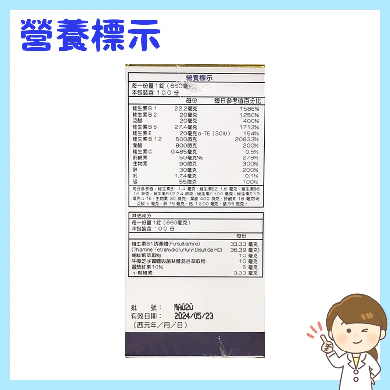 【悅補】B+鋅 EX 緩釋錠 (100粒)
