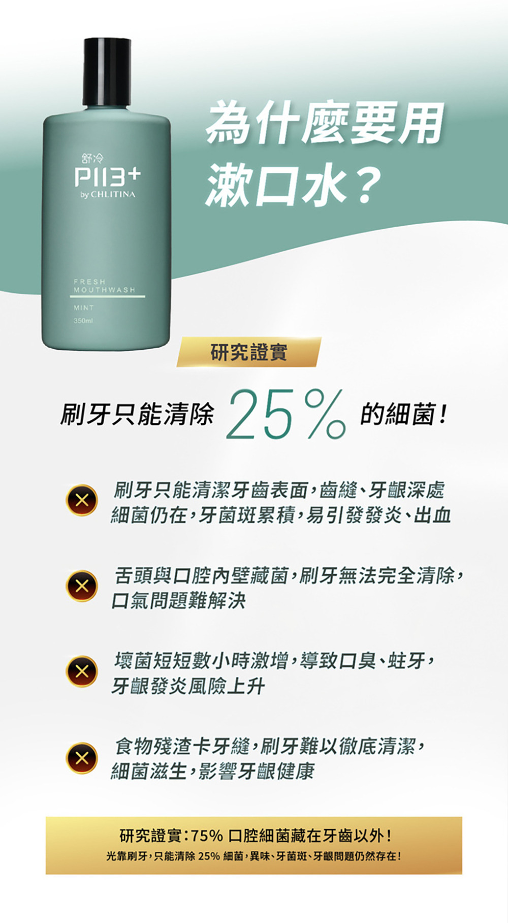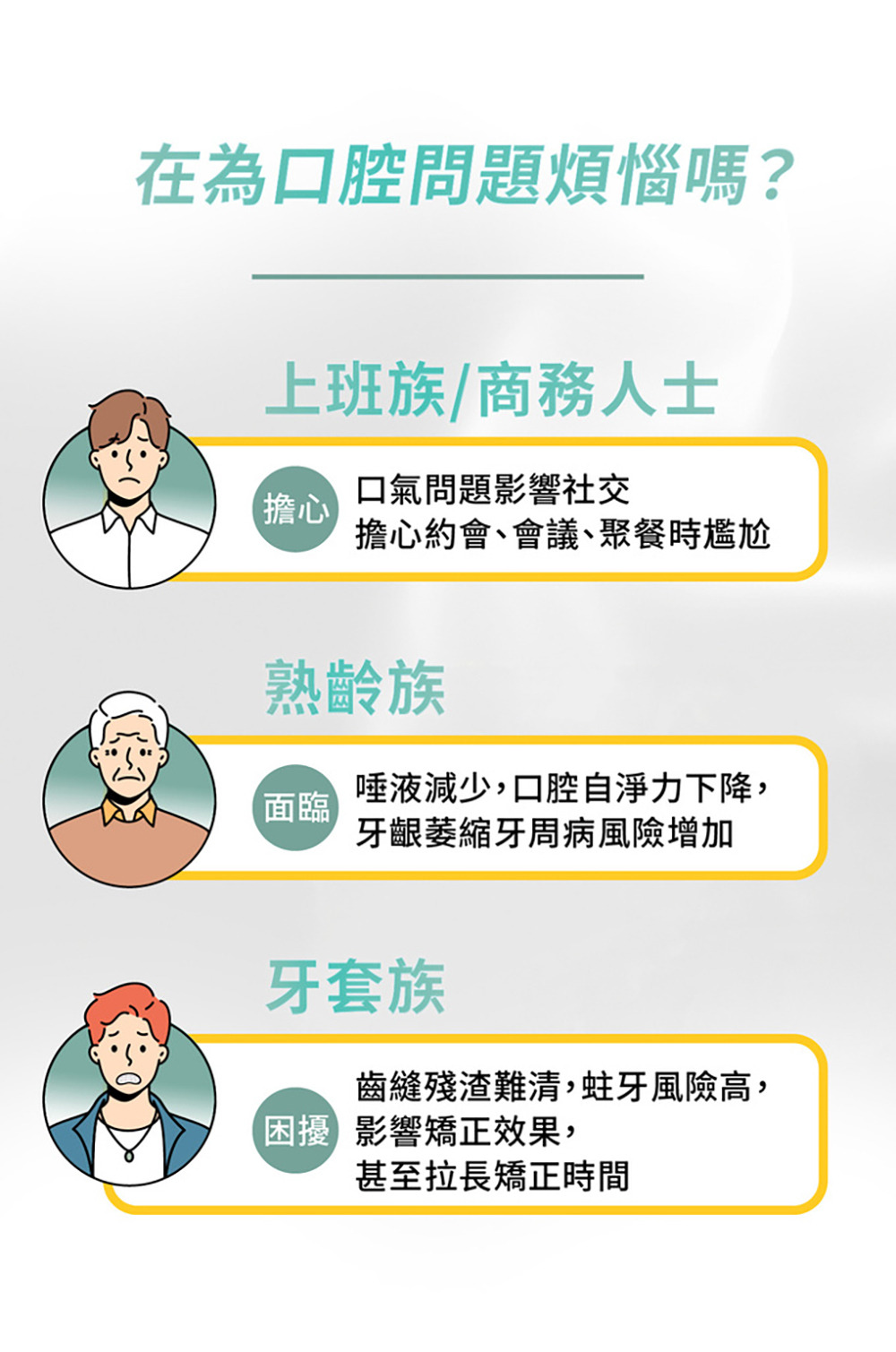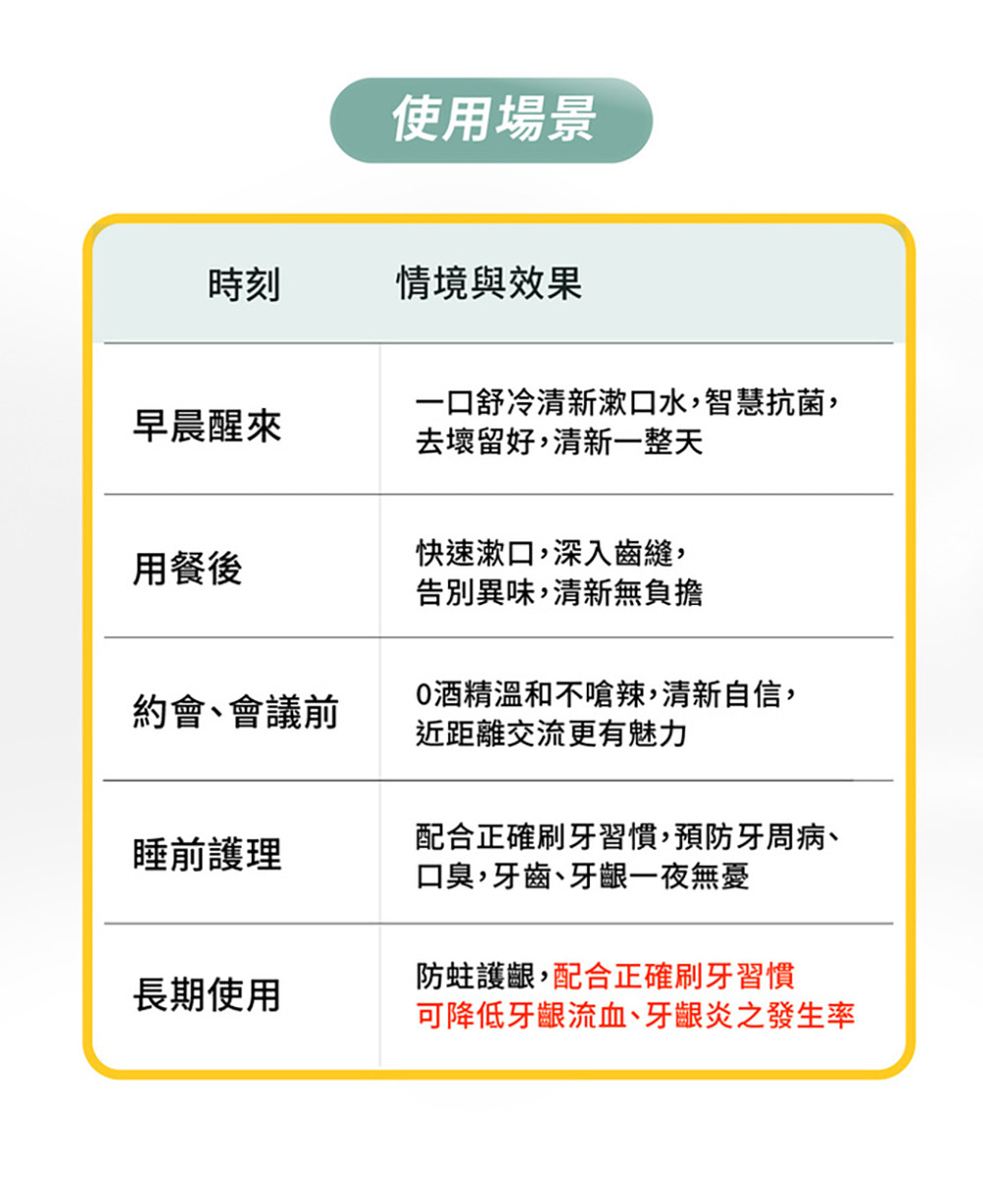 配合正確刷牙習慣,可幫助降低牙周病、牙齦流血、牙齦發炎、口臭之發生率