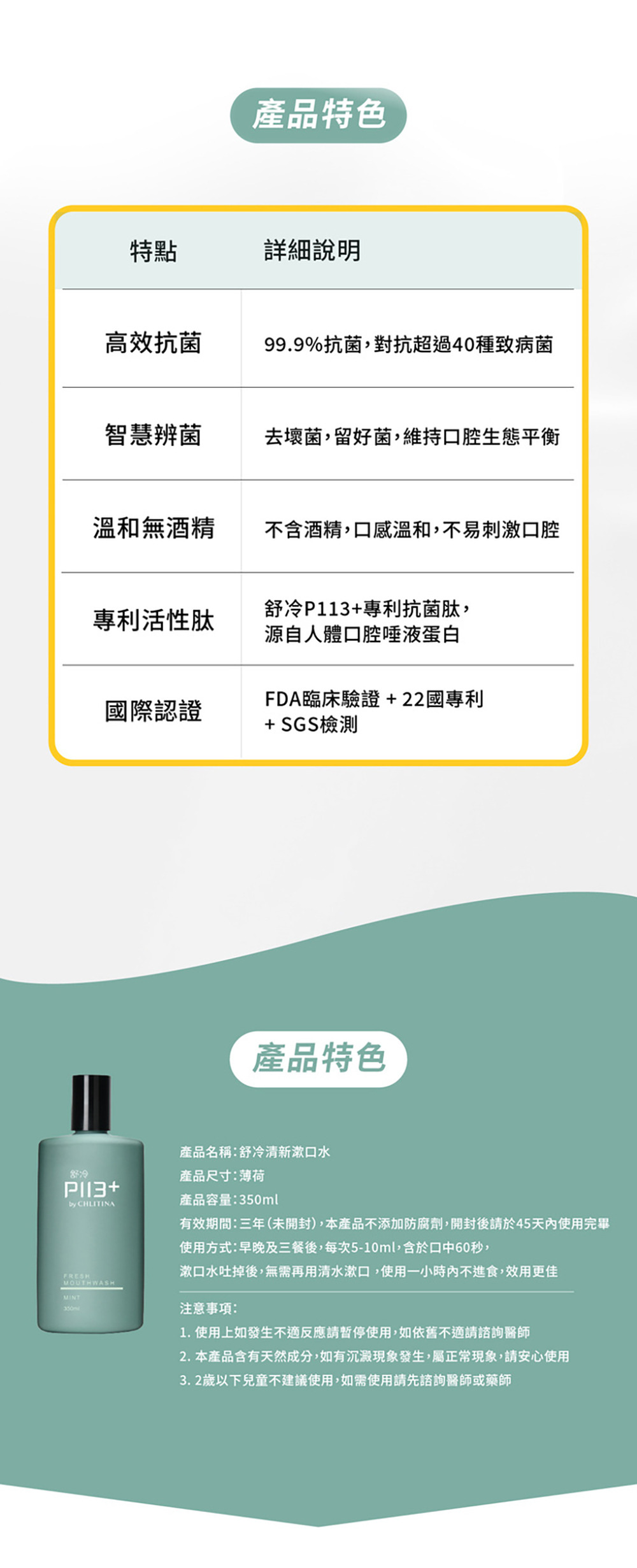 慷碩生醫-舒冷P113+ 清新漱口水350ml /罐