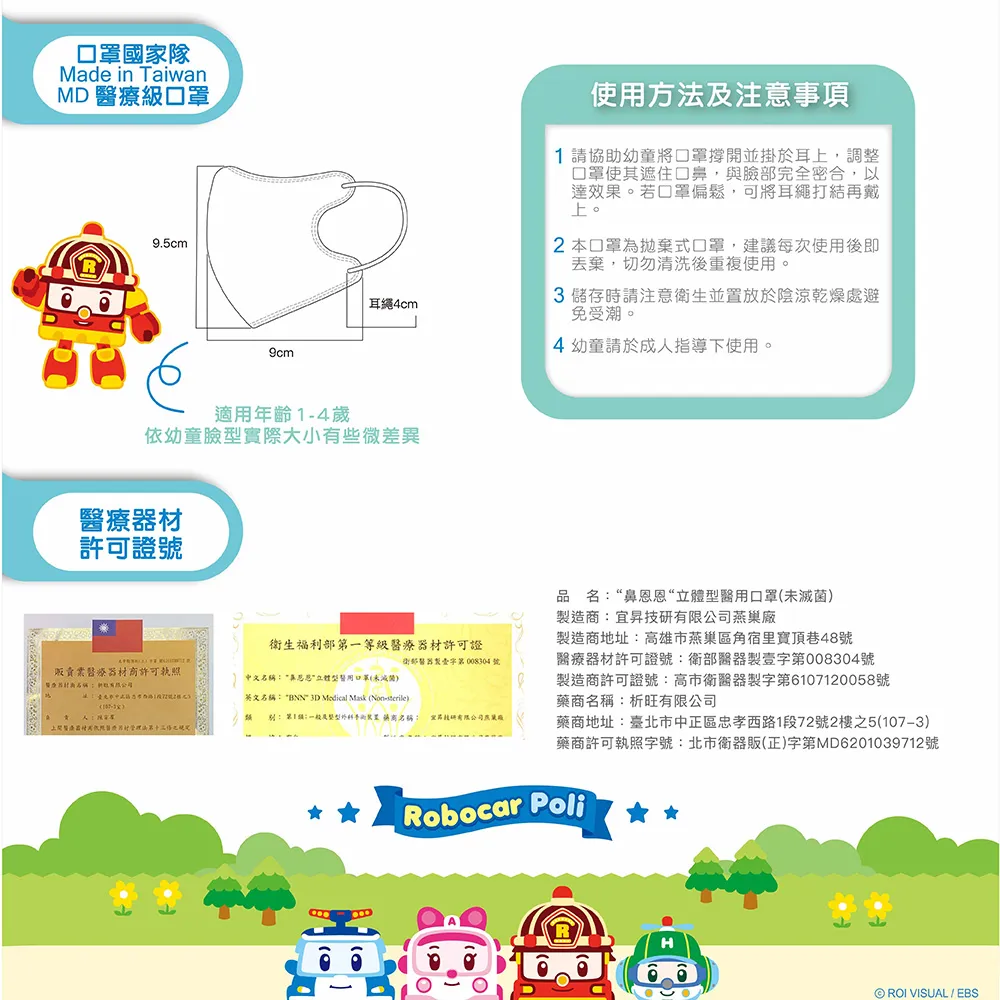 【波力】(童話世界)3D幼幼立體醫用口罩25入/盒(1-4歲)