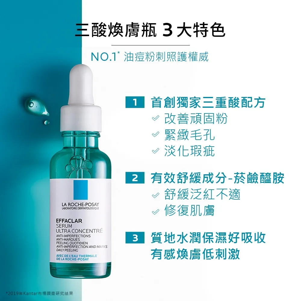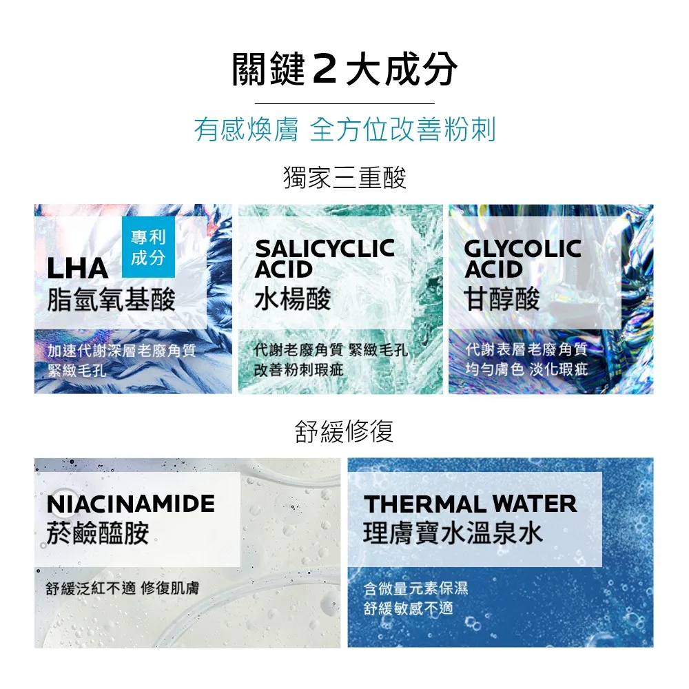 • 首創獨家三重酸配方(超越基礎煥膚,深度代謝粉刺)