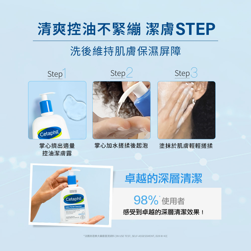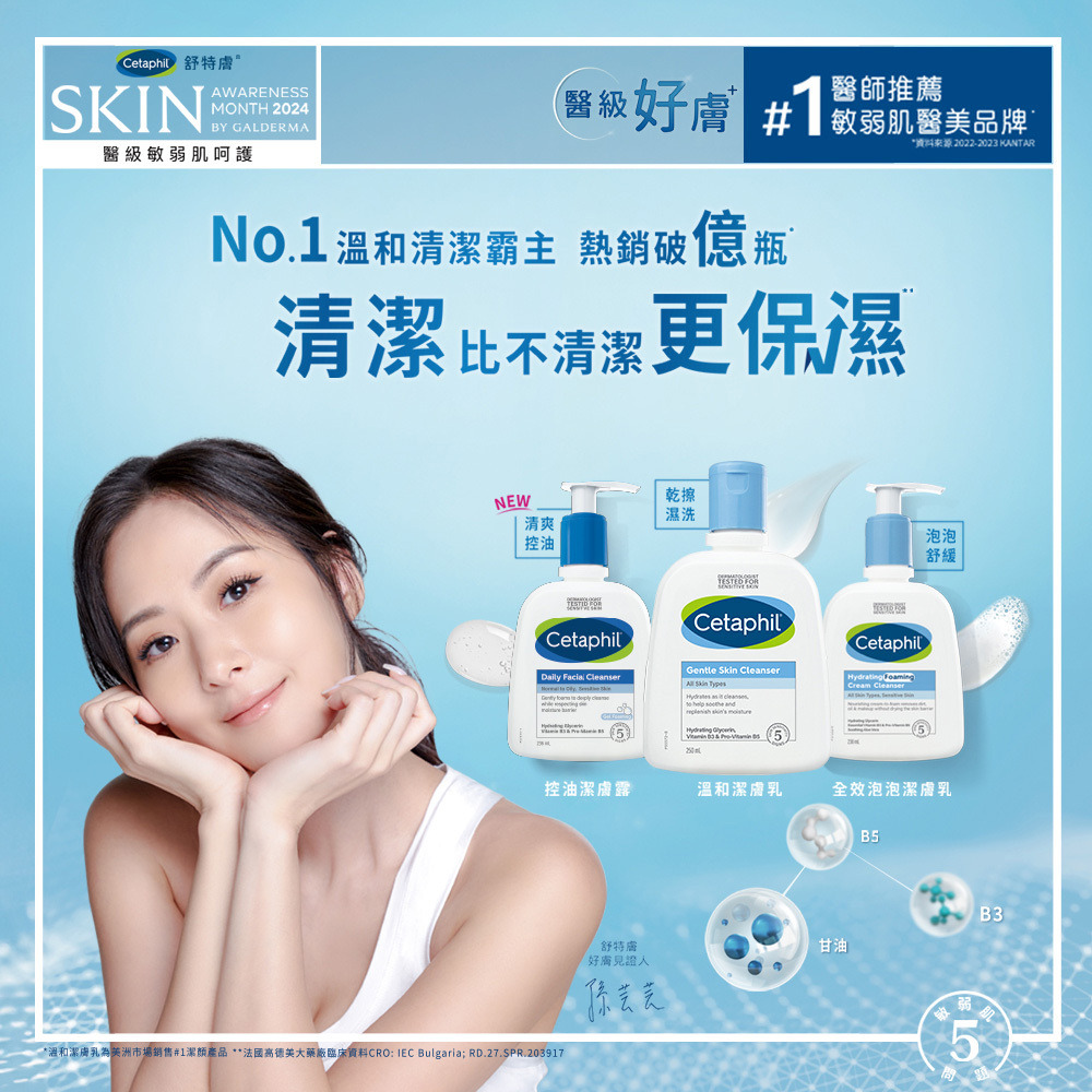 維他命B3、B5、甘油,清潔同時滋潤