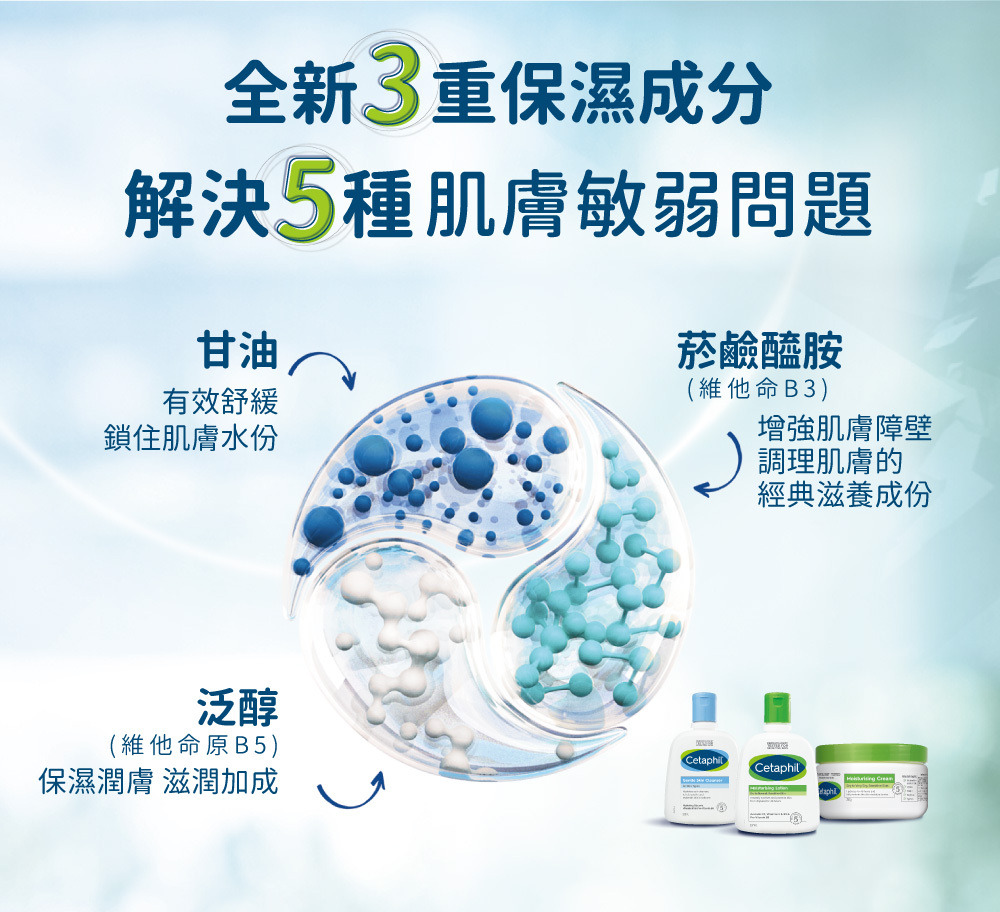 •維他命B3 、B5、甘油調理,清潔同時滋潤