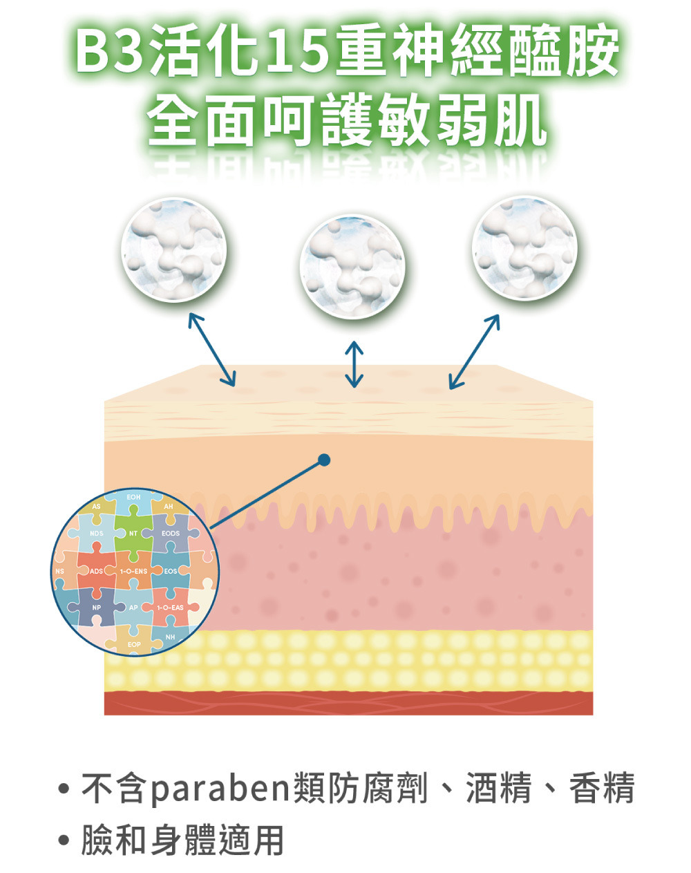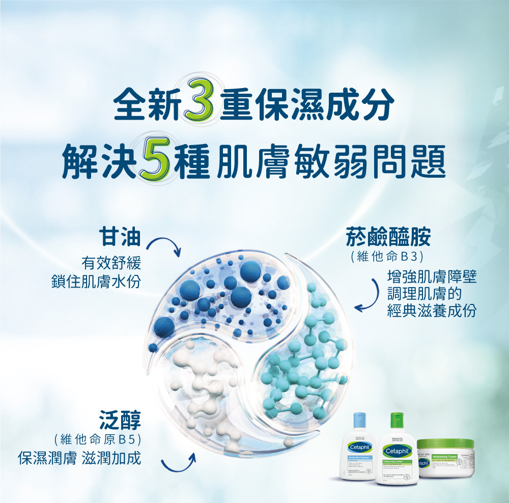 •維他命B3、B5、E調理,1週恢復保濕屏障