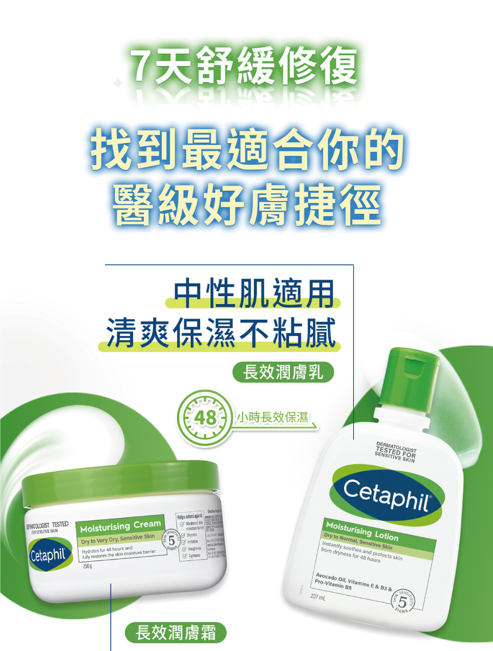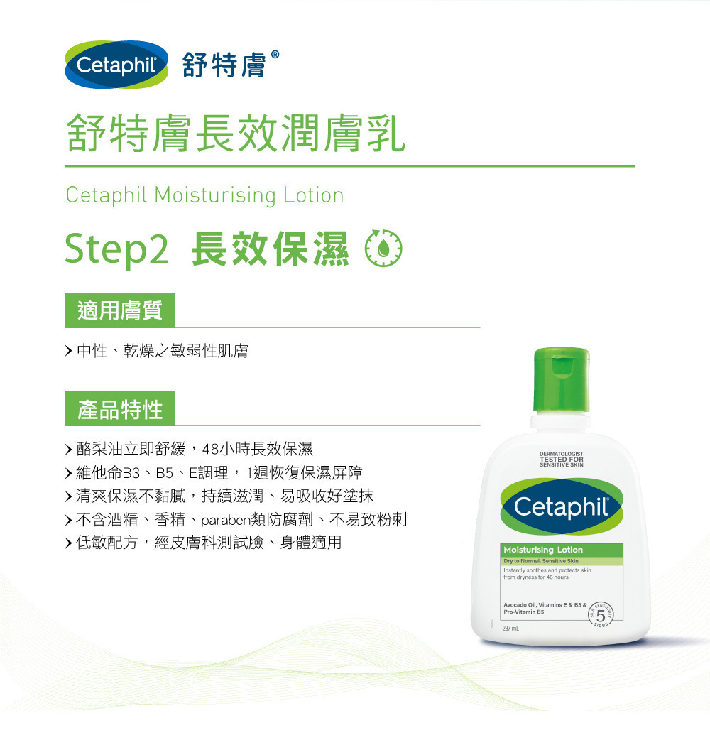 •酪梨油立即舒緩,48小時長效保濕