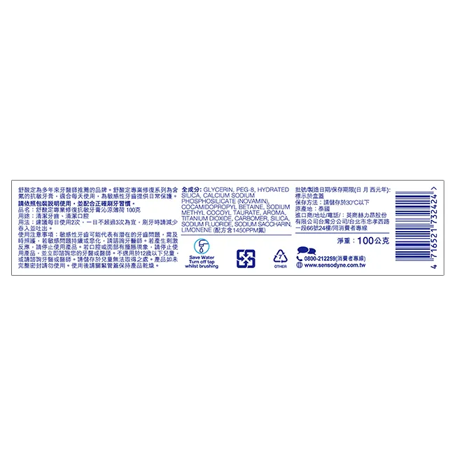 台灣牙醫 專業推薦【舒酸定 專業修復-沁涼薄荷】修護敏感受損部位 清新口氣-抗敏牙膏給想清新且修復牙齒敏感部位的你突破性Novamin形成修復層保持口腔清潔口氣清新一整天
