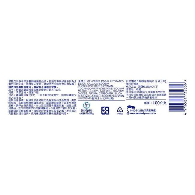 舒酸定-專業抗敏護齦牙膏亮白配方 100g