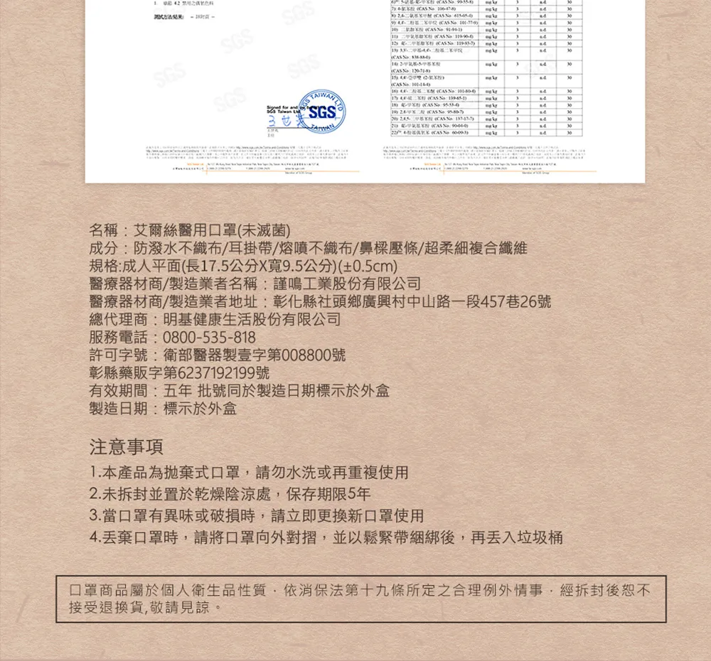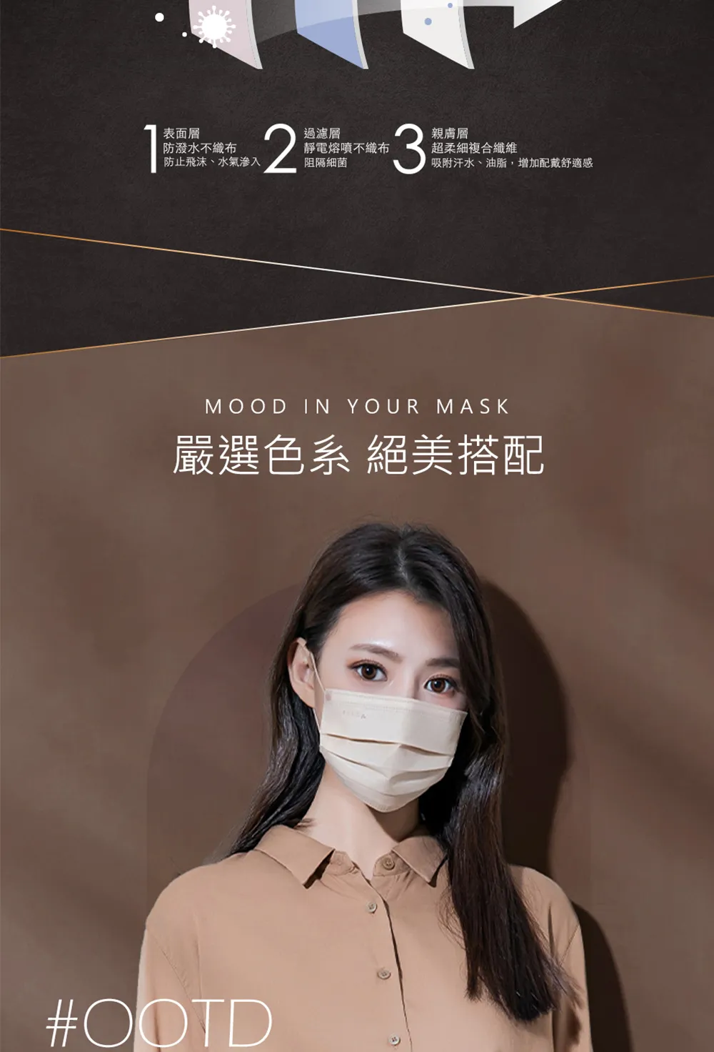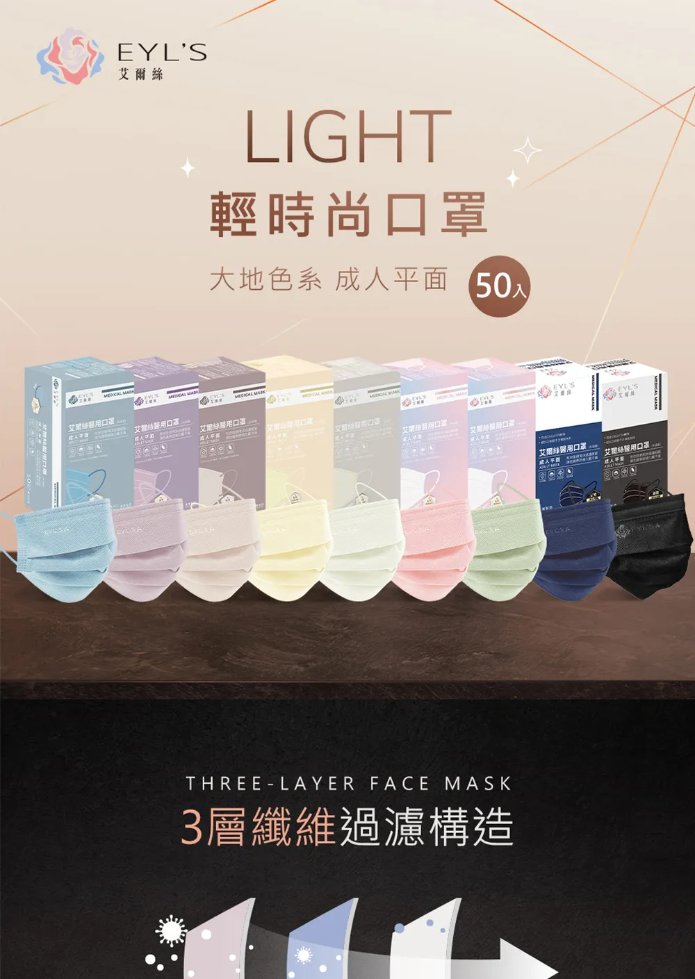 【艾爾絲】(奶油白)醫用平面口罩50片/盒