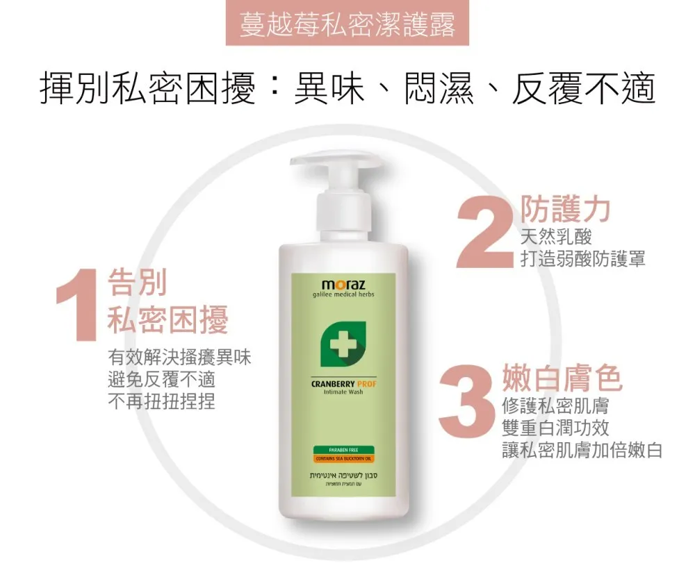 商品名稱/容量:moraz茉娜姿 蔓越苺私密潔護露(升級版)250ml