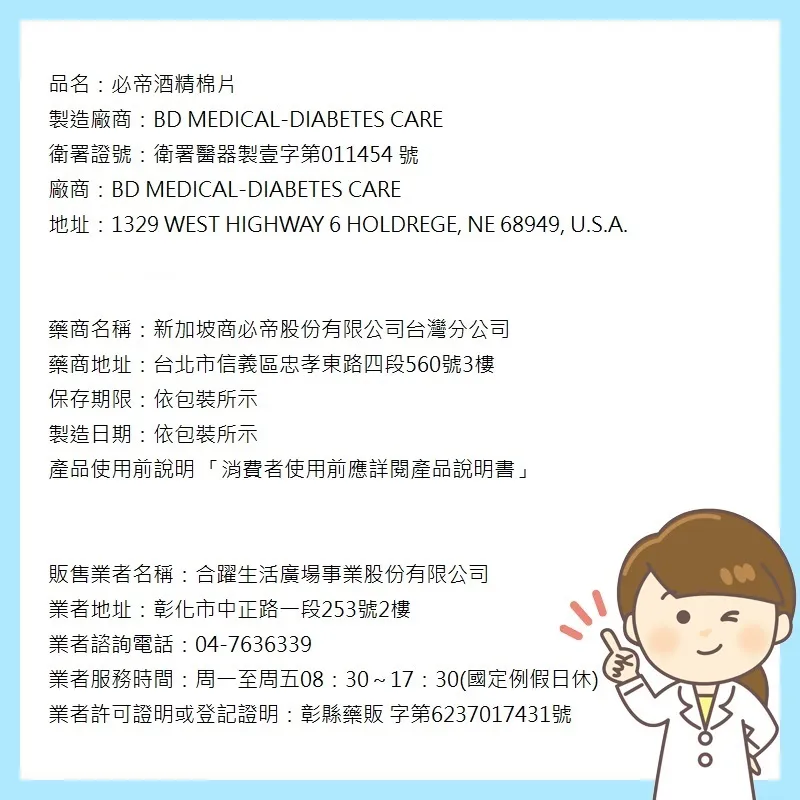 BD必帝酒精棉片100片/盒
