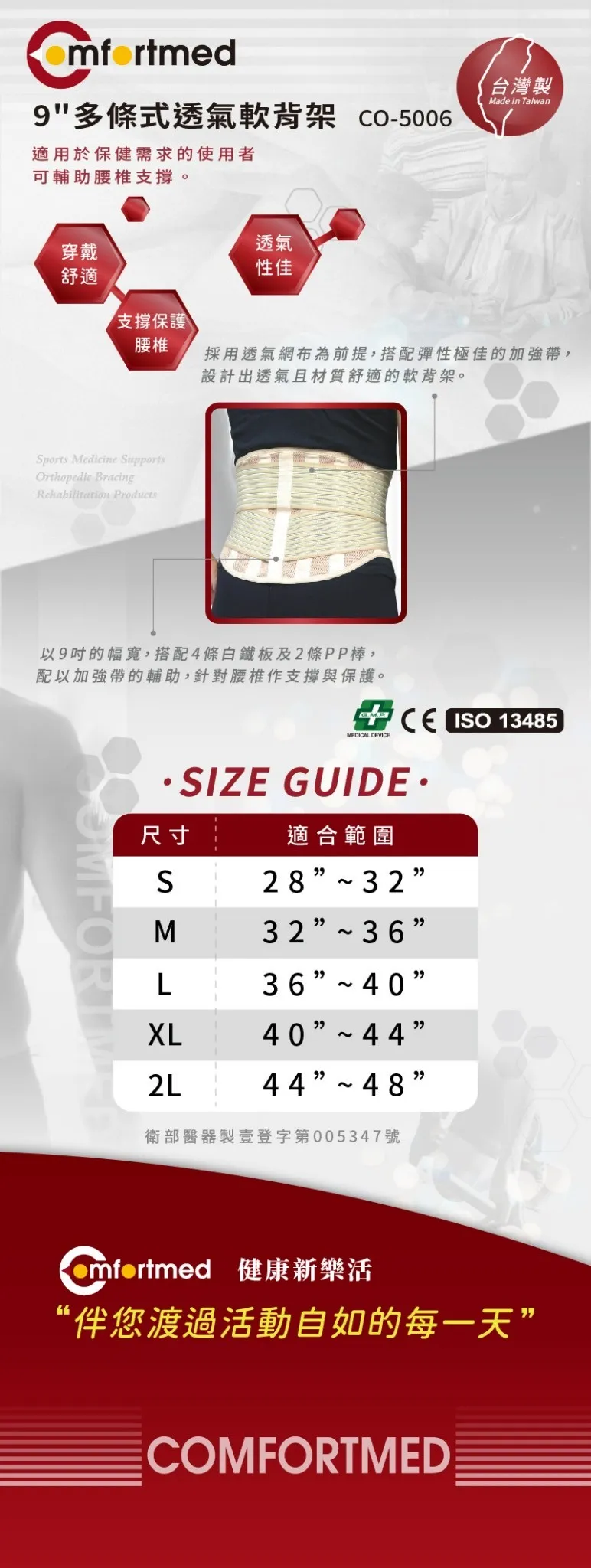 【Comfortmed】5006 多條式透氣軟背架L/個
