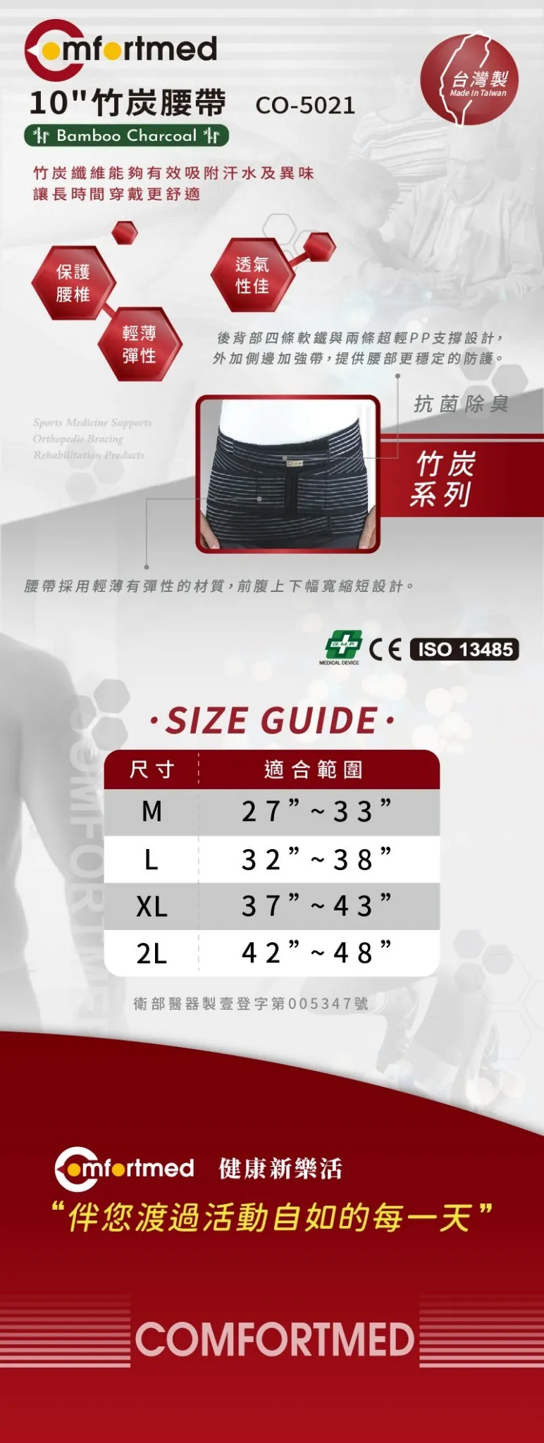 【Comfortmed】5021 10"竹炭腰帶L/條