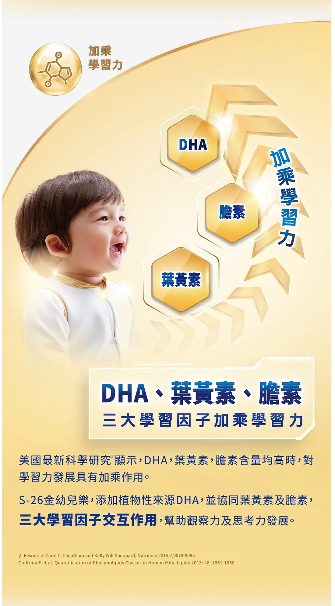 4.內容物成分(如含有豬、牛成分請加註國別):乳糖、脫脂乳粉、麥芽糊精、大豆油、濃縮乳清蛋白、高油酸葵花籽油、果寡醣、精製棕櫚油、提高α-乳白蛋白含量之濃縮乳清蛋白、檸檬酸鉀、大豆卵磷脂、碳酸鈣、魚油(含廿二碳六烯酸DHA) 、脂肪酸甘油酯、氫氧化鉀、2’-岩藻糖基乳糖、氯化膽鹼、磷酸二氫鈉、維生素C、磷酸氫鈣、碳酸氫鉀 、檸檬酸鈉、氯化鎂、硫酸亞鐵、牛磺酸、檸檬酸、高山被孢黴發酵產物(含花生油酸AA)、肌醇、香料、硫酸鋅、5’-胞核苷單磷酸鹽、5’-尿核苷單磷酸鹽、混合濃縮生育醇(抗氧化劑)、菸鹼醯胺、維生素E、5’-腺核苷單磷酸鹽、5’-次黃嘌呤核苷單磷酸鹽、本多酸鈣、5’-鳥嘌呤核苷單磷酸鹽、L-抗壞血酸棕櫚酸酯(抗氧化劑)、紅花籽油、硫酸銅、葵花籽油、維生素A棕櫚酸酯、硫酸錳、維生素B1、維生素B2、維生素B6、金盞花萃取物 (含葉黃素)、苢-胡蘿蔔素、葉酸、維生素K1、亞硒酸鈉、碘化鉀、維生素D3、生物素、維生素B12。 本產品含有: 牛奶、大豆製品及魚油